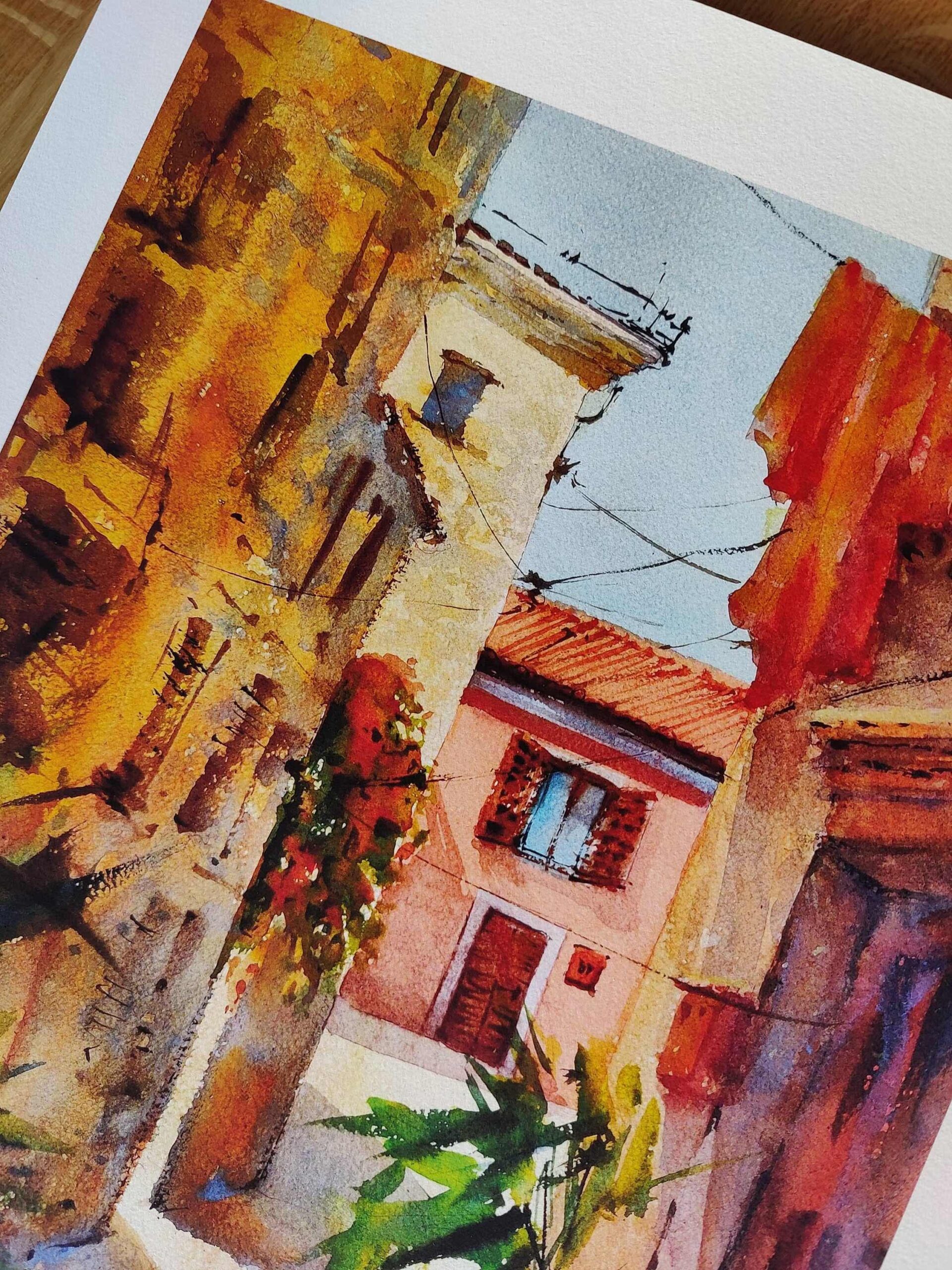 A beautiful art print of Slovenian’s coastal town Piran, with its gorgeous mediterannean streets, printed on fine art paper. Based on my original painting that has already been sold. So happy to offer prints of it as well now!