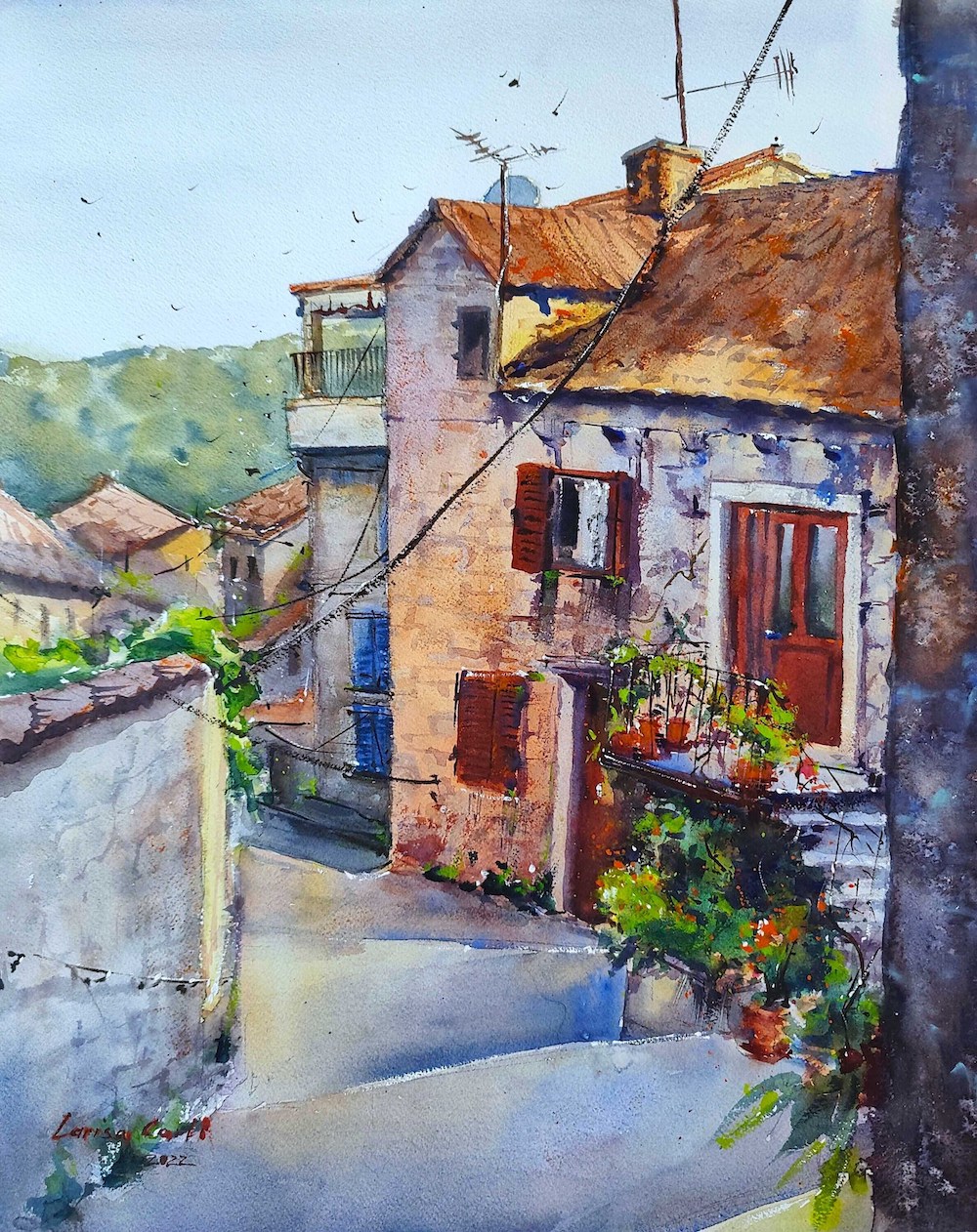 Croatia Hvar street Mediterannean, Original watercolor painting