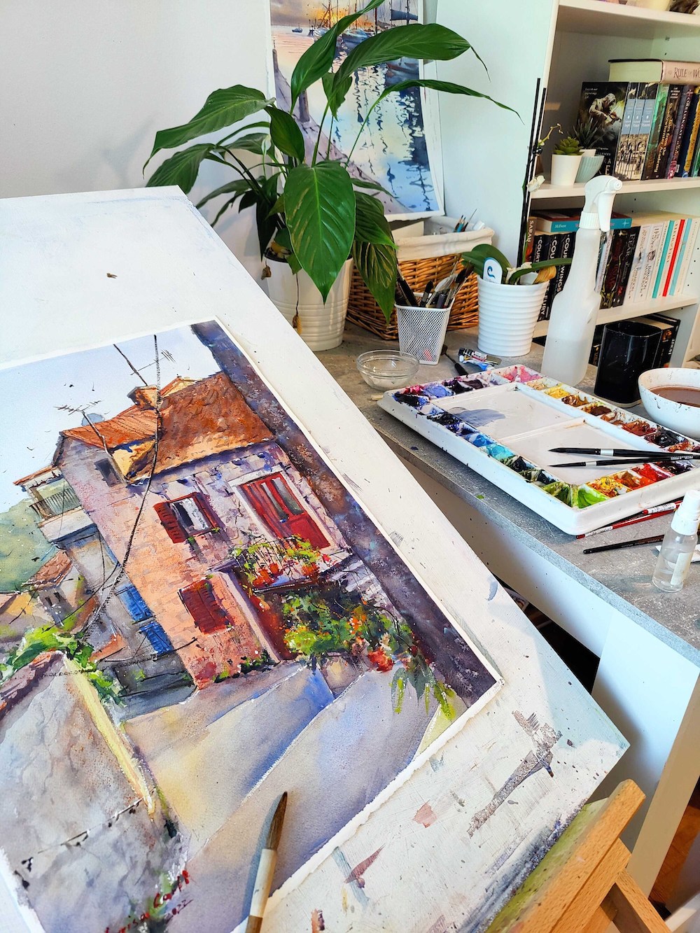 This painting showcases one of the most beautiful Croatian island towns – Hvar. Hvar is the main harbour and town of the island with the same name, and it has absolutely stunning architecture. I saw this scene on a morning walk and immediately knew I need to paint it.