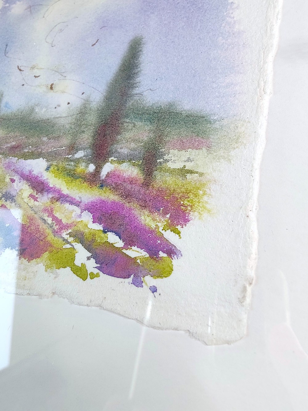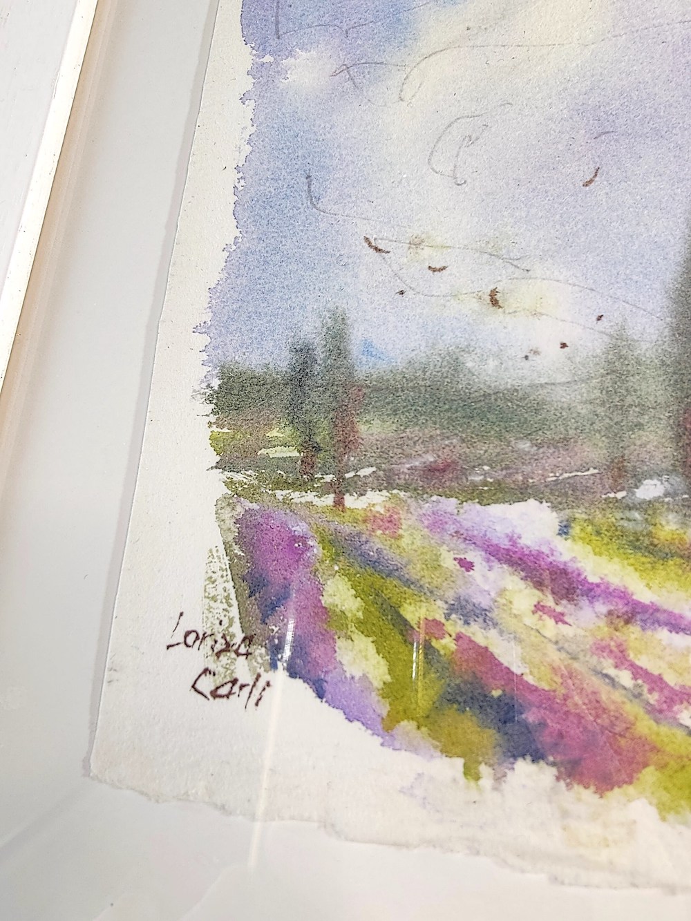 France lavender fields, Watercolor original painting (FRAMED ARTWORK)