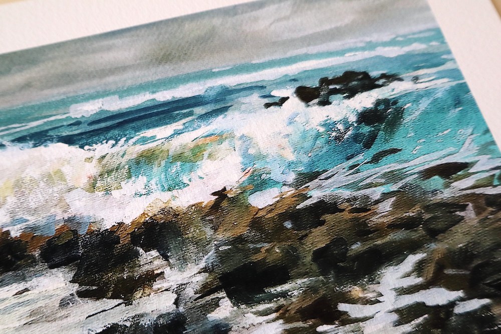 A Canaries Lanzarote waves breaking on black volcanic rocks of the gorgeous Papagayo beach, printed on fine art paper. Based on my original hand-painted gouache painting. So happy to offer prints of it as well now!