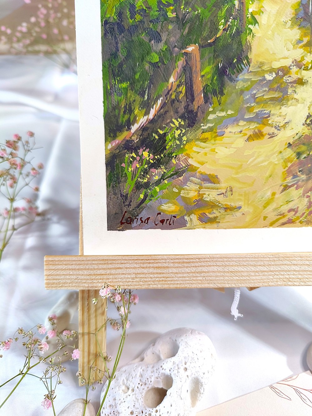 Paintings are wrapped in bubble wrap and sealed against moisture. Artworks up to A3 size arrive flat, and the larger ones arrive rolled and safely packaged in a triangular box.