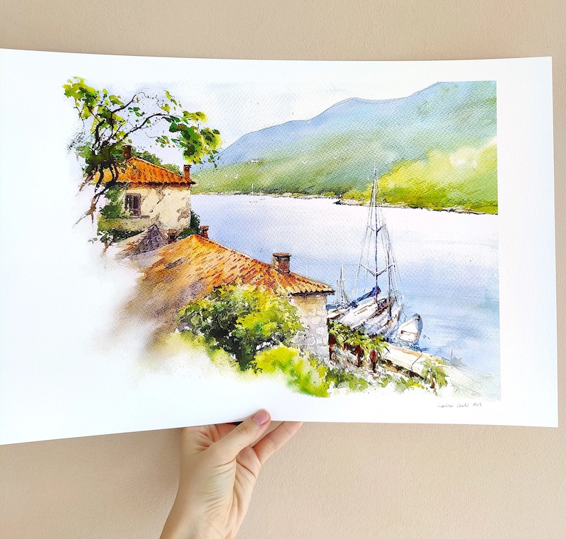 An art print of a beautiful coastal Croatian port Rabac, the heart of Istria, printed on fine art paper. So happy to offer prints of it as well now!