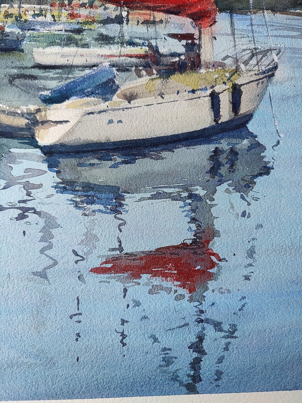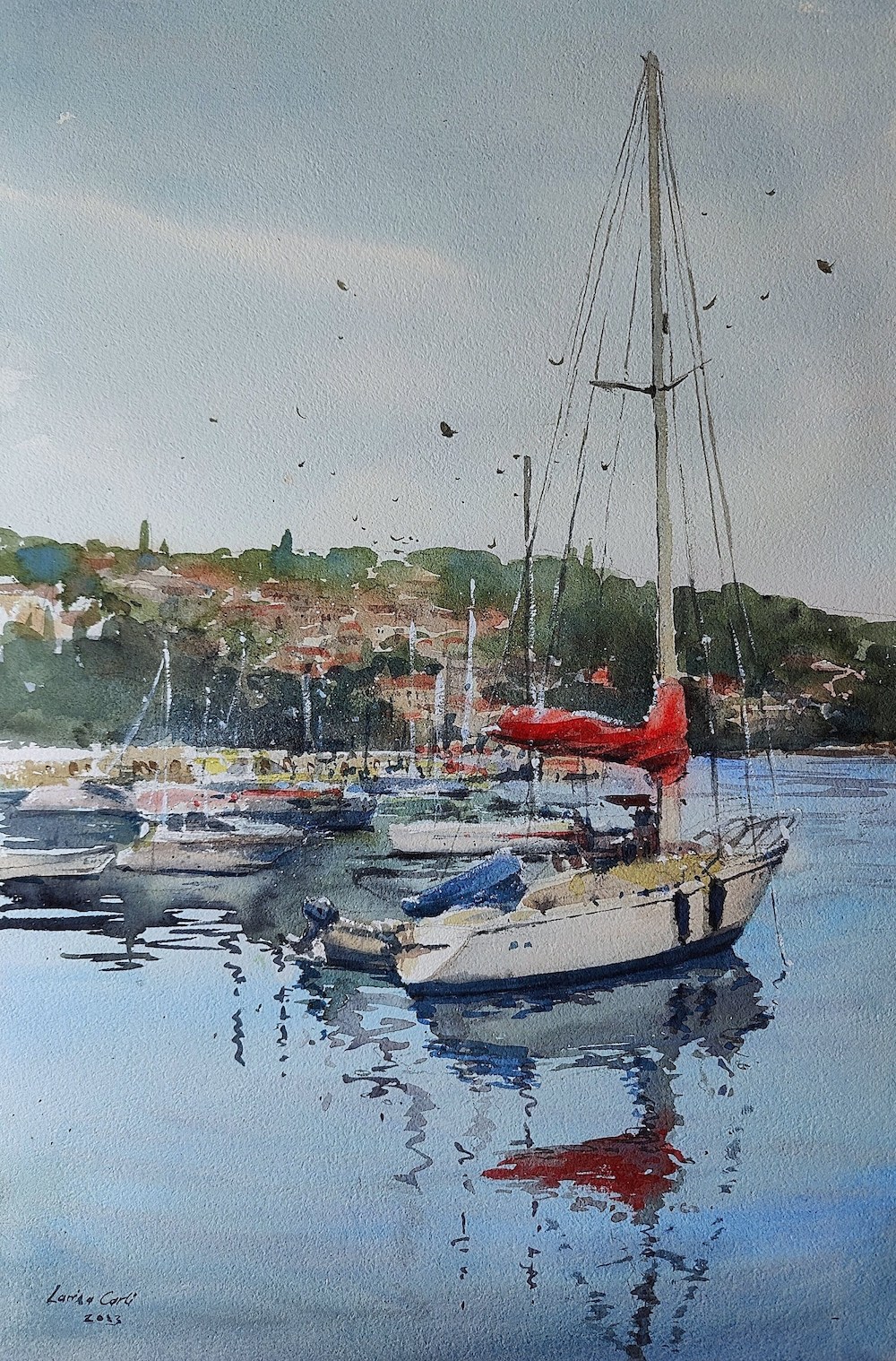 Jadrnice Istrskega opatijskega pristanišča, Hrvaška originalna akvarelna slika