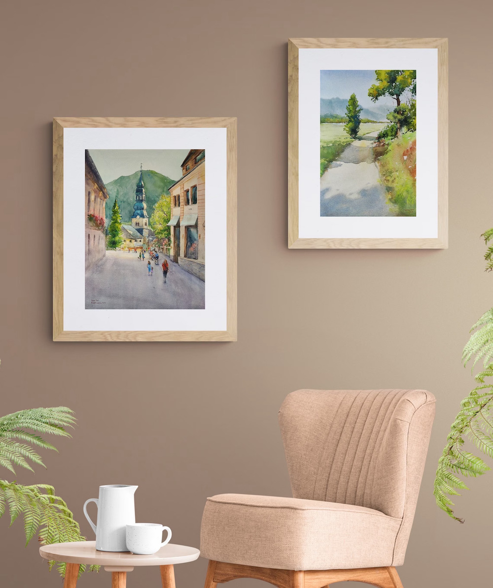 Slovenija Bohinjska naravoslovna pot, izvirna akvarelna slika